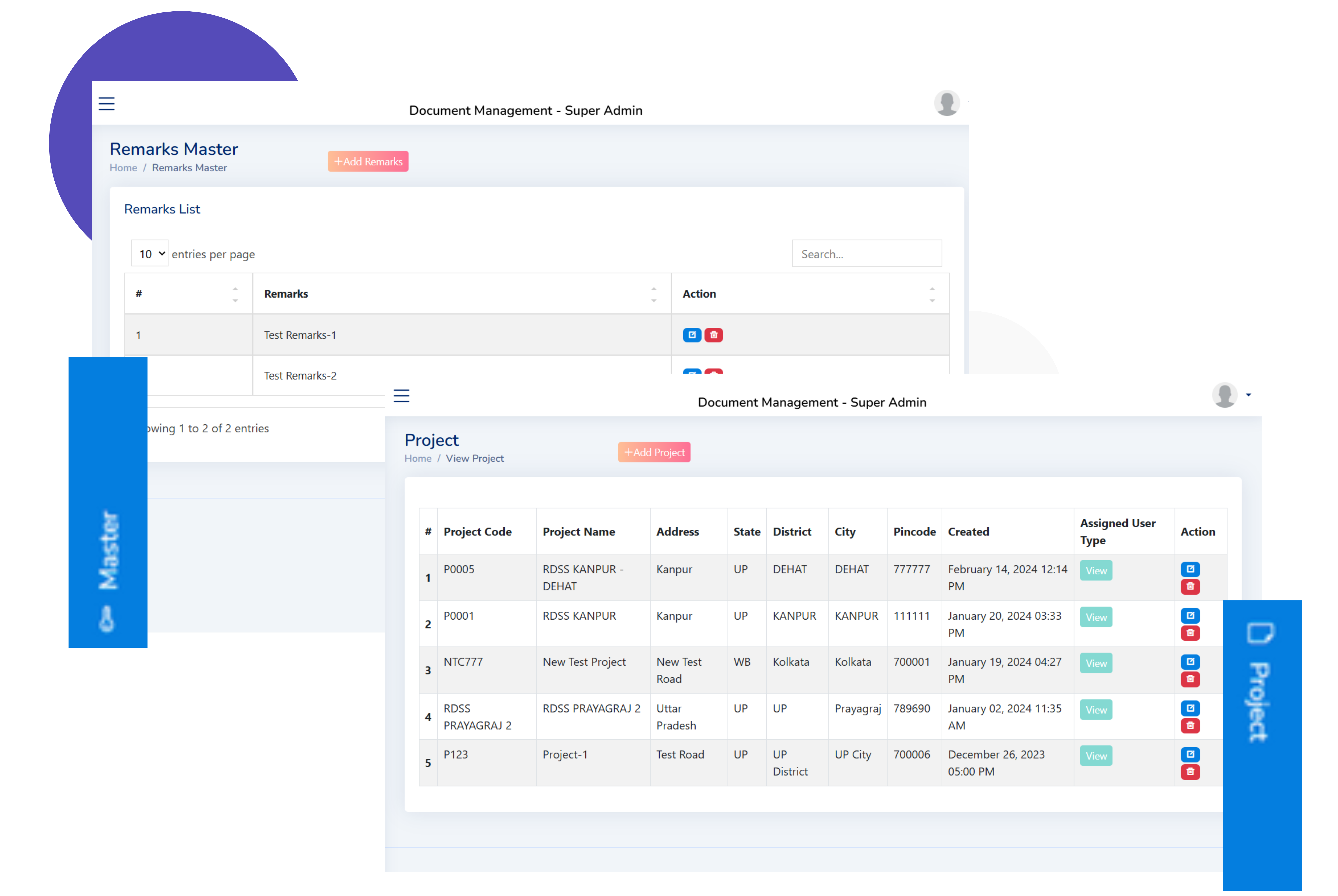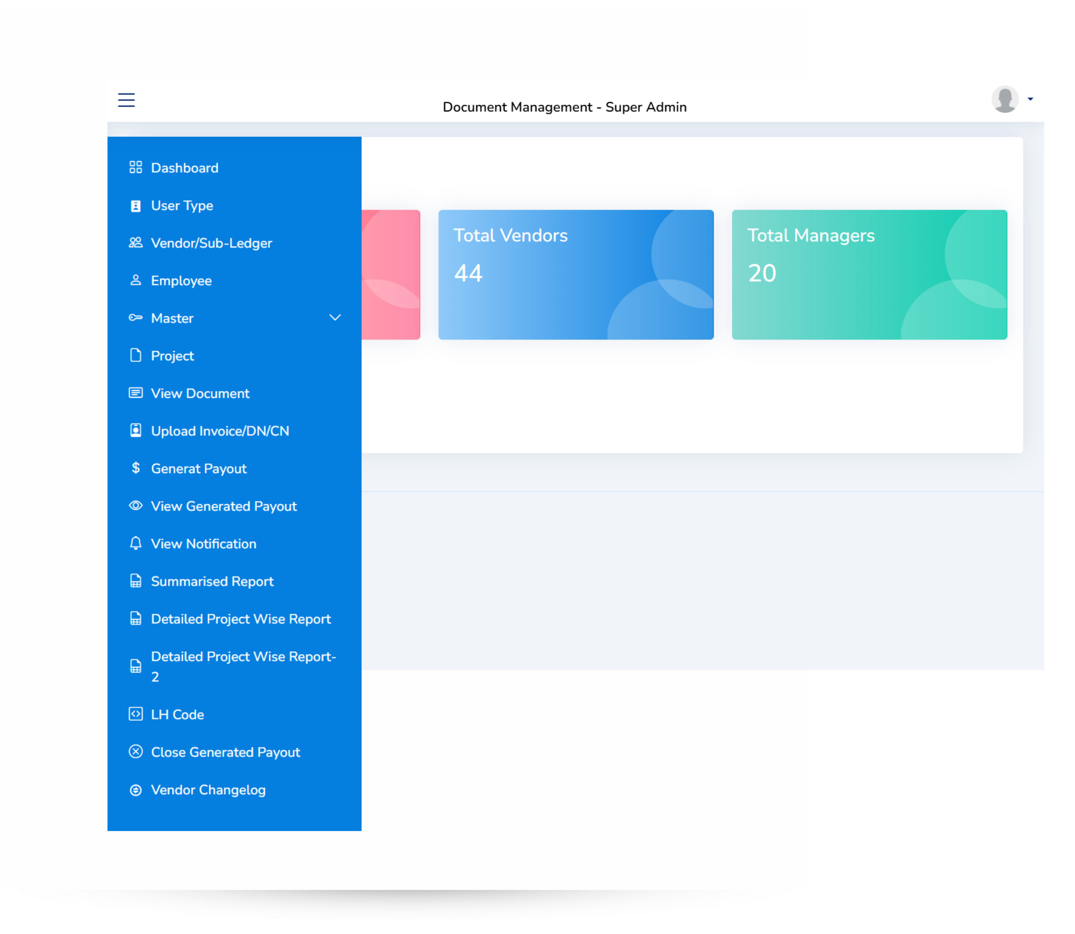 A unified master setup for vendors, projects, document types, approval rules, and financial parameters—ensuring consistency across the platform.