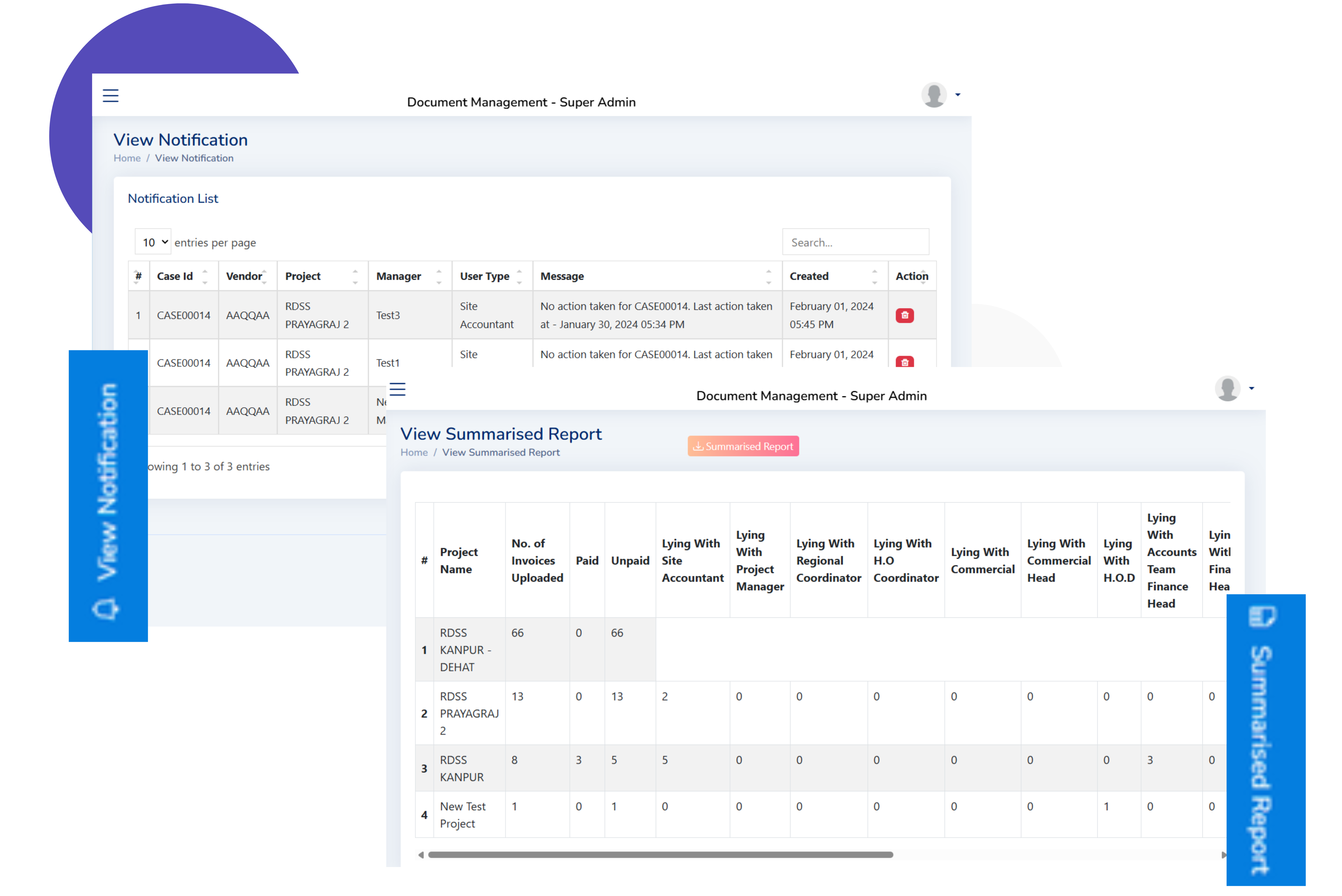 Detailed project-wise reporting to monitor document flow, invoice status, costs, and payouts for informed decision-making.