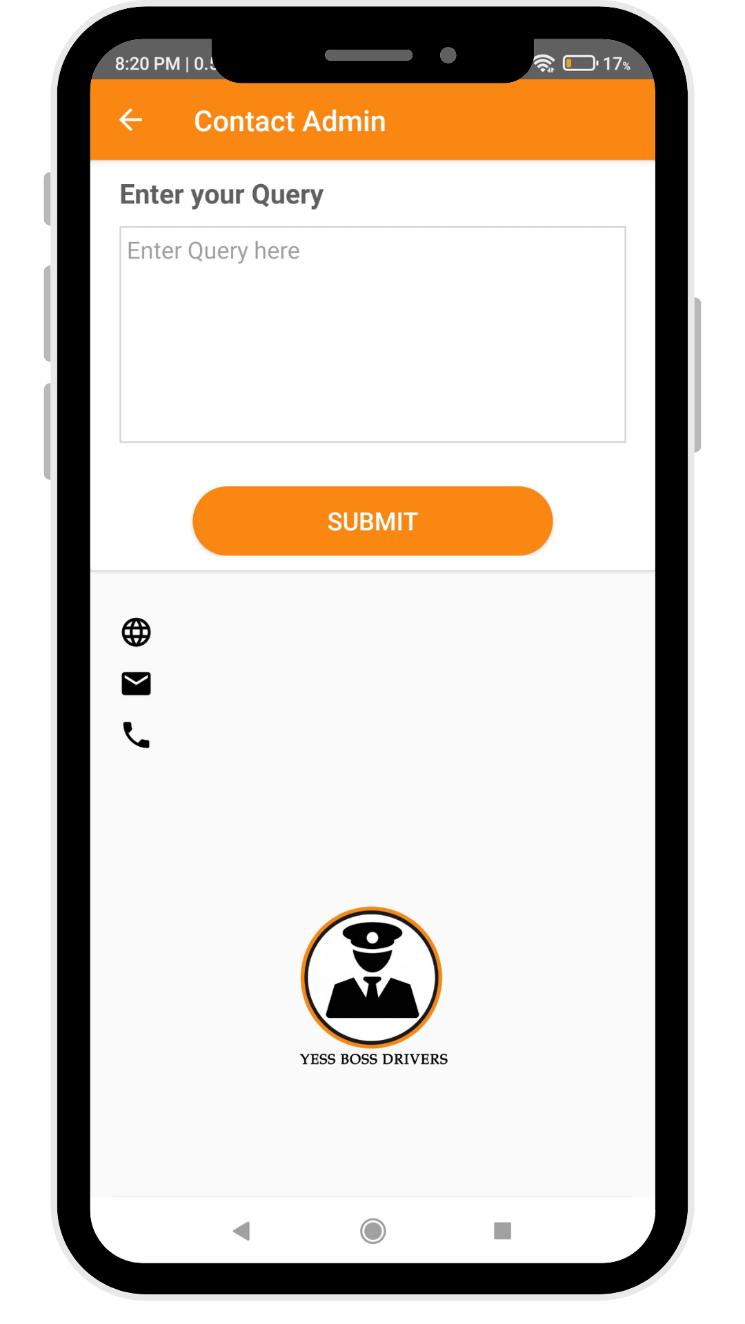 Driver with a direct and efficient way to reach out to support or administration for any issues or queries.