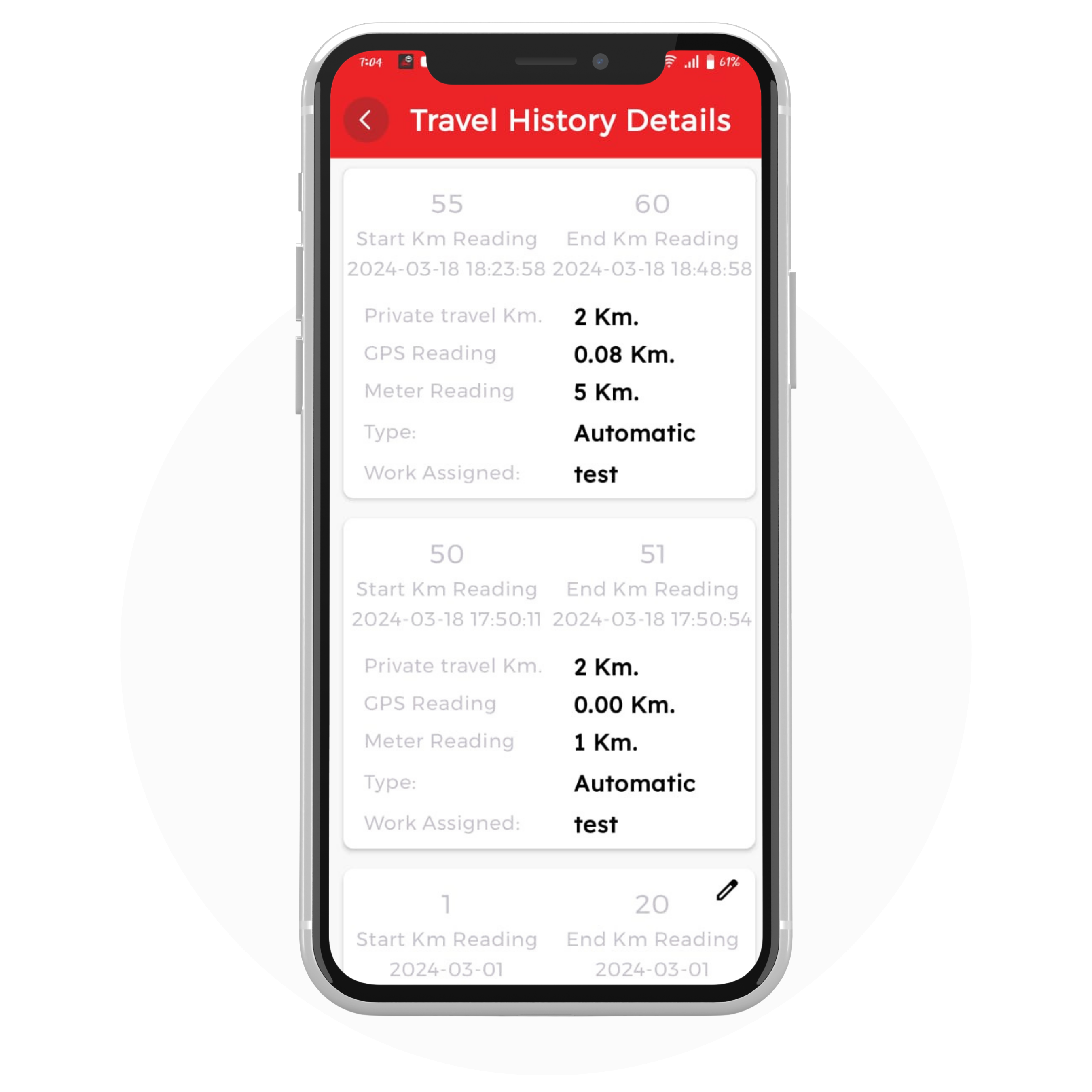 If applicable, they first input the private travel kilometers from the previous trip to account for personal use.